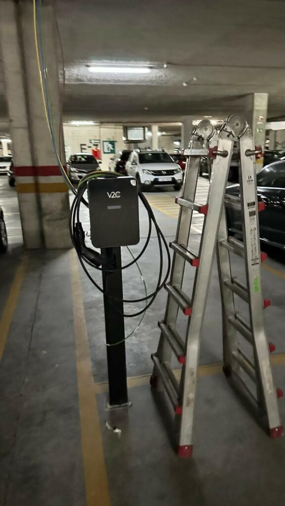 Mi plaza de garaje está en un parking comunitario con varios portales y vecinos que inicialmente se mostraron curiosos sobre el cargador y su estanqueidad. Para evitar conflictos comuniqué con antelación que iba a hacer la instalación, empresa y fecha y preguntando si tenían pensado algún tipo de preinstalación o algún tipo de norma comunitaria, ya que iba a ser el primer cargador en un parking de más de 500 plazas.